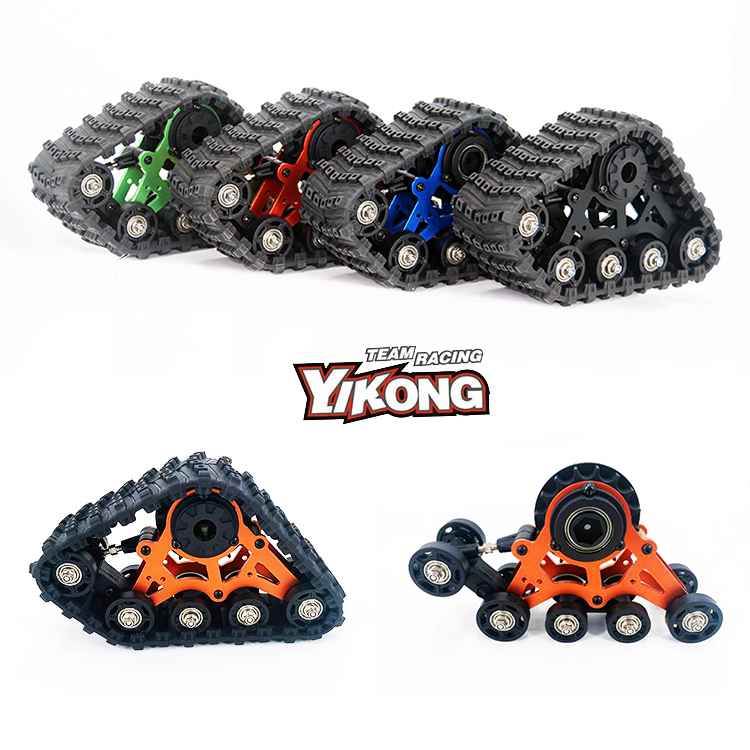 Overview: The YIKONG all-terrain tracked kit (#13001T) is suitable for various terrains, offering excellent off-road capability. It features aluminum alloy shock absorbers and high-strength aluminum plates for durability. Fully sealed bearings and adjustable tracks prevent derailment. It is compatible with 1/10 and 1/8 series models, as well as TRX-4 and SCX10 II.
